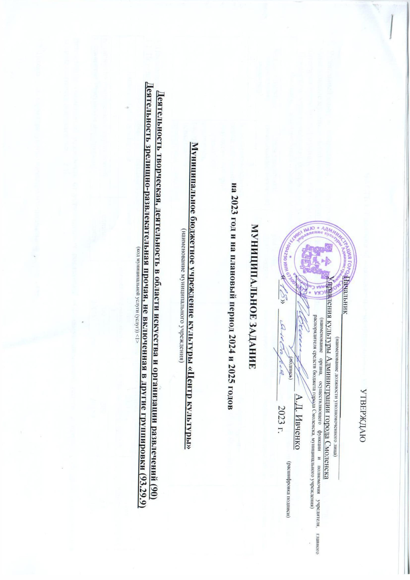 Муниципальное задание на 2023 год